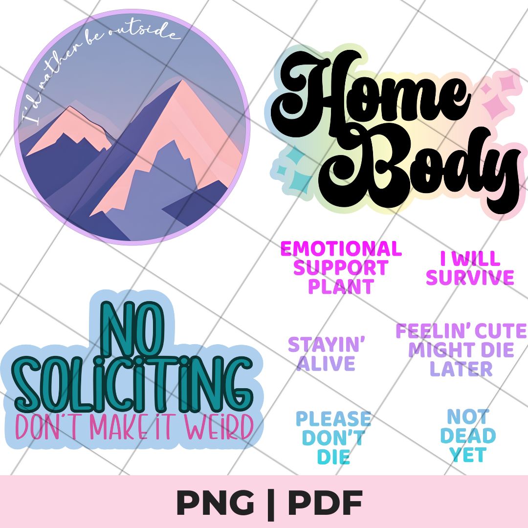 Do you sometimes just feel that need to be alone?  Not lonely, just alone? Solitude is a space where thoughts echo more clearly and the world feels paused just long enough for you to breathe deeply. This bundle of sublimation designs sort of brings that feeling to light and also brings some humor with it. We even have your plants in on it.  Grab this bundle and display your creativity on mugs, pillows, signs, tumblers, t-shirts, keychains and more!