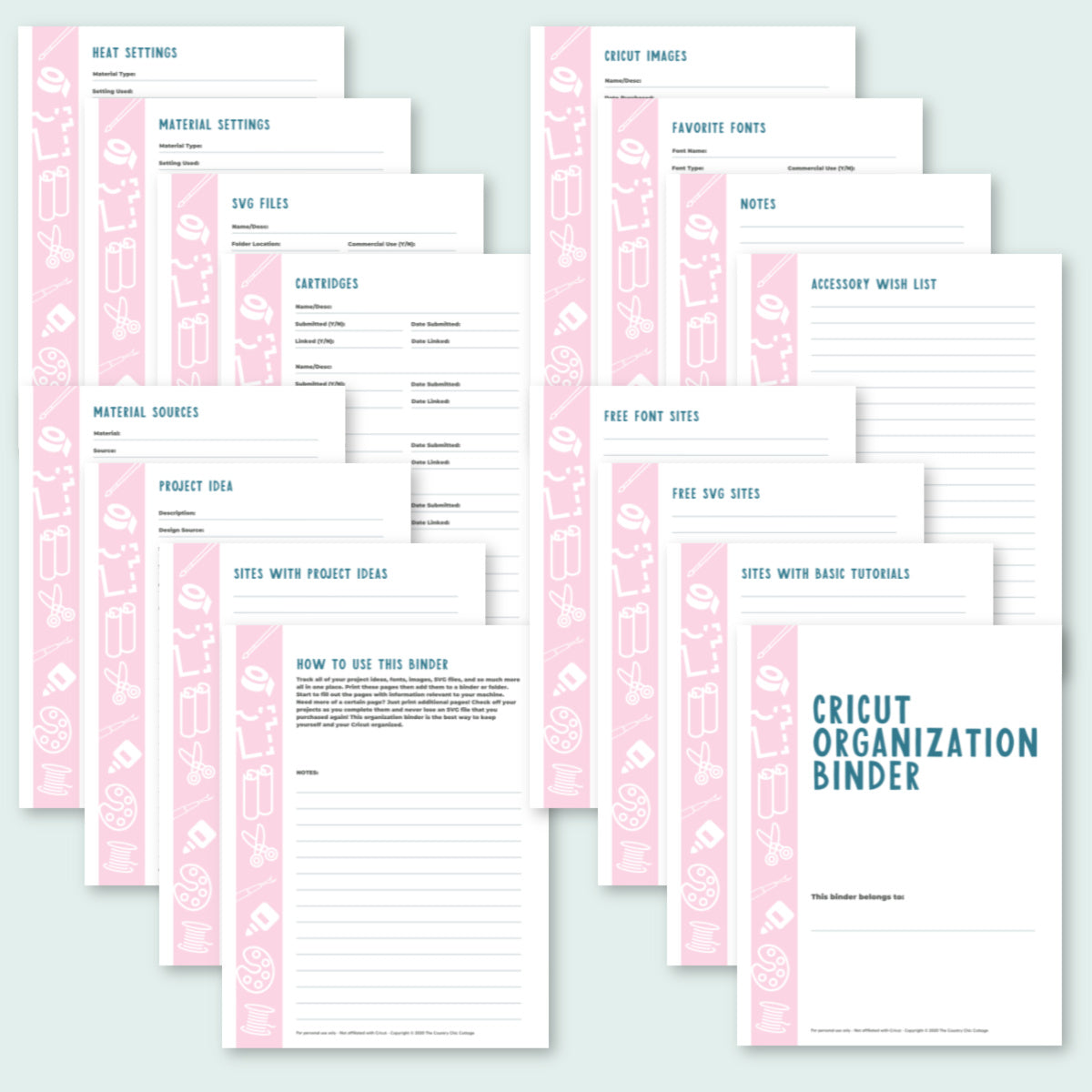 Transform your crafting chaos into creative clarity with the ultimate Cricut Organization Bundle! This all-in-one toolkit is designed to streamline your craft space and supercharge your workflow. Inside, you'll find beautifully designed craft room labels to keep supplies sorted, a handy cheat sheet for flawless iron-on projects, clever Cricut hacks to save time and effort, and a comprehensive organizational binder to track materials, projects, and inspiration. Whether you're a seasoned Cricut pro or just starting out, this bundle brings order, efficiency, and a touch of style to your creative corner.